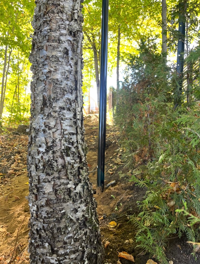 Tous les travaux sont réalisés avec soin, trous creusés à la main, afin de préserver la pelouse, les aménagements et les fleurs.